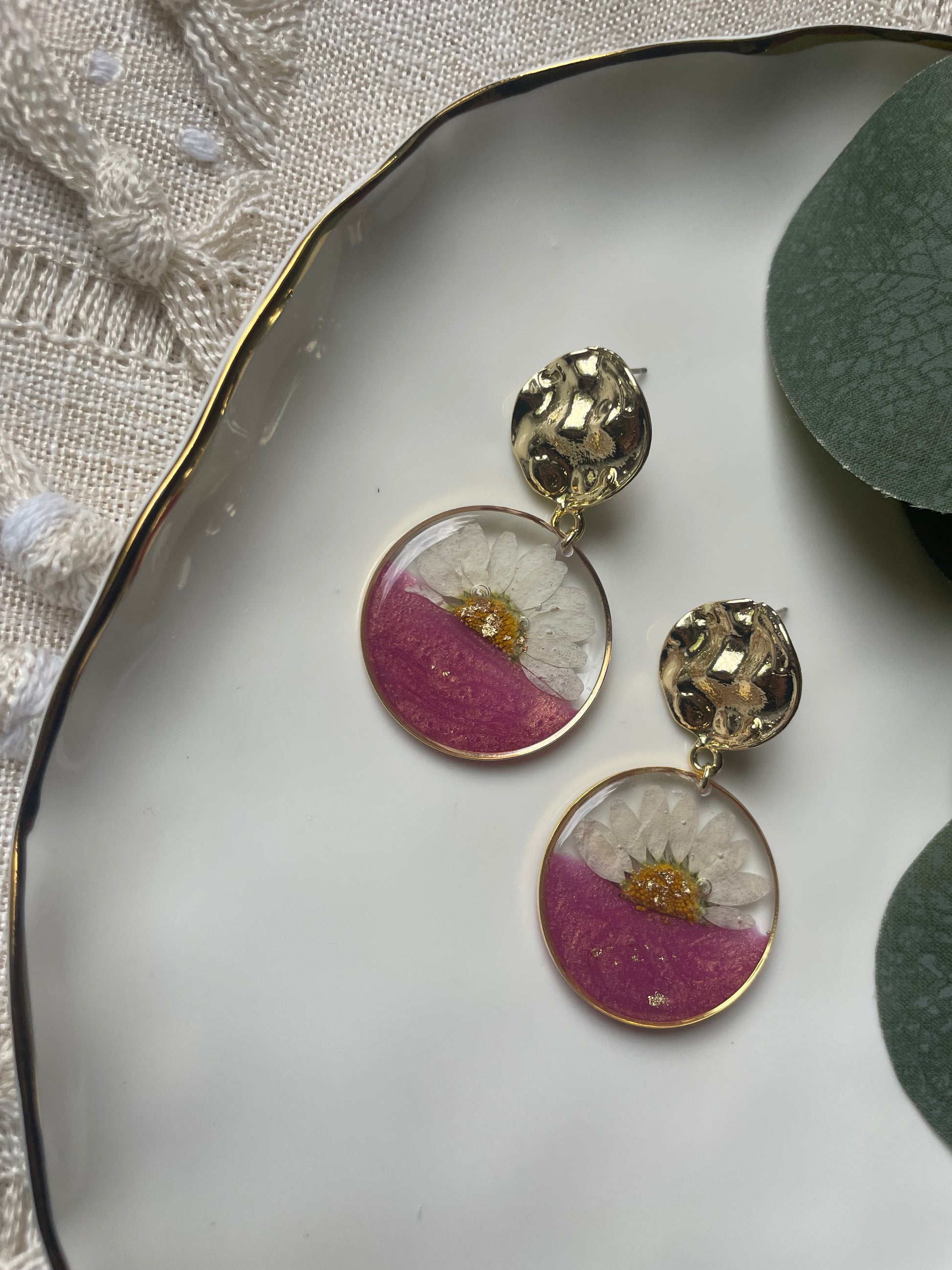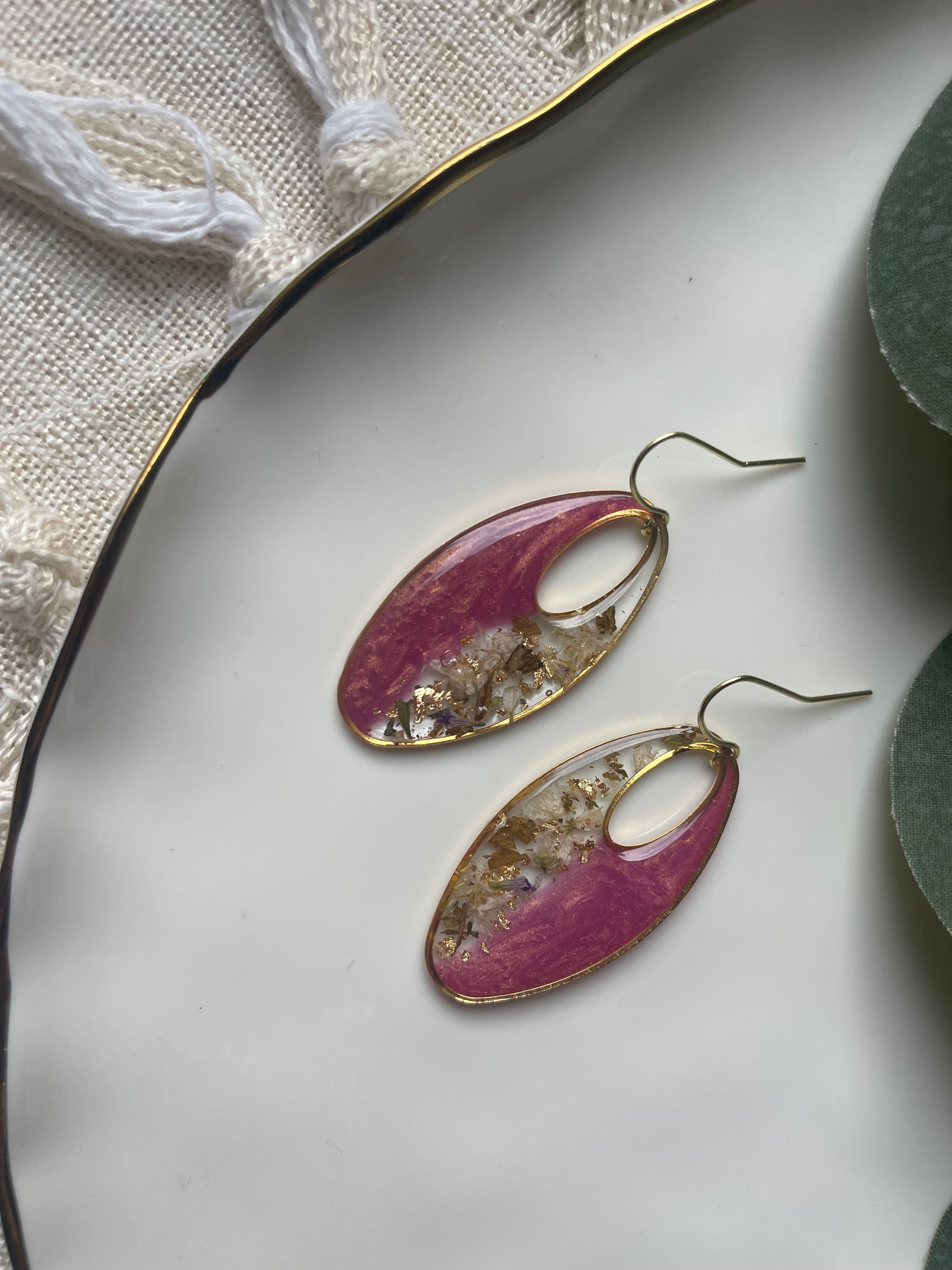Experience the beauty of nature with our Harvest Plum Collection! Each unique resin piece is intricately crafted with real dried flowers, bringing a touch of elegance to your outfit. Made with durable plum colored resin, our collection is the perfect combination of style and nature.