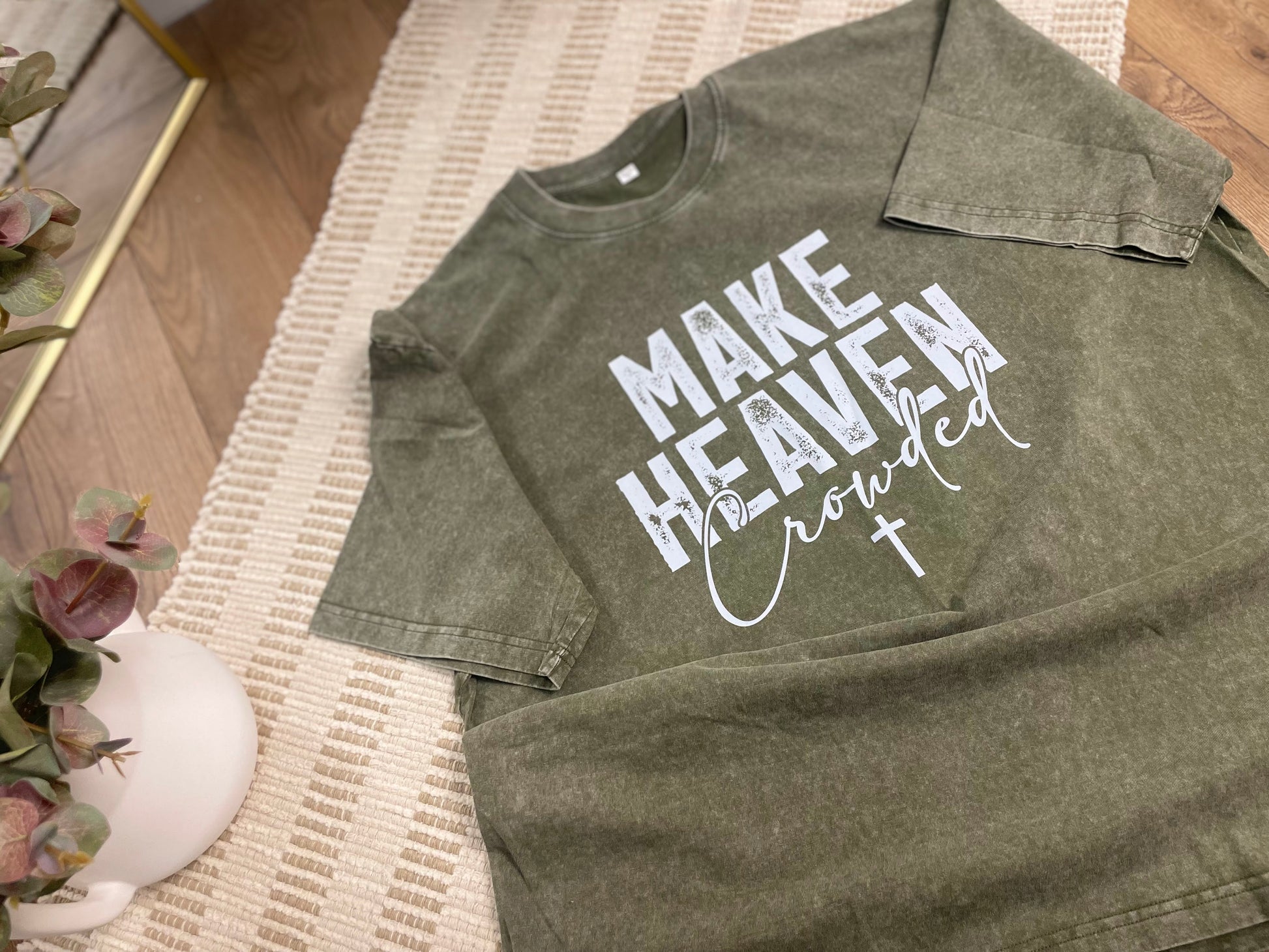 These vintage washed tees are heavyweight and slightly oversized, with a faith-based design. Elevate any outfit with this shirt, a perfect blend of comfort and style. Made with 100% premium cotton.