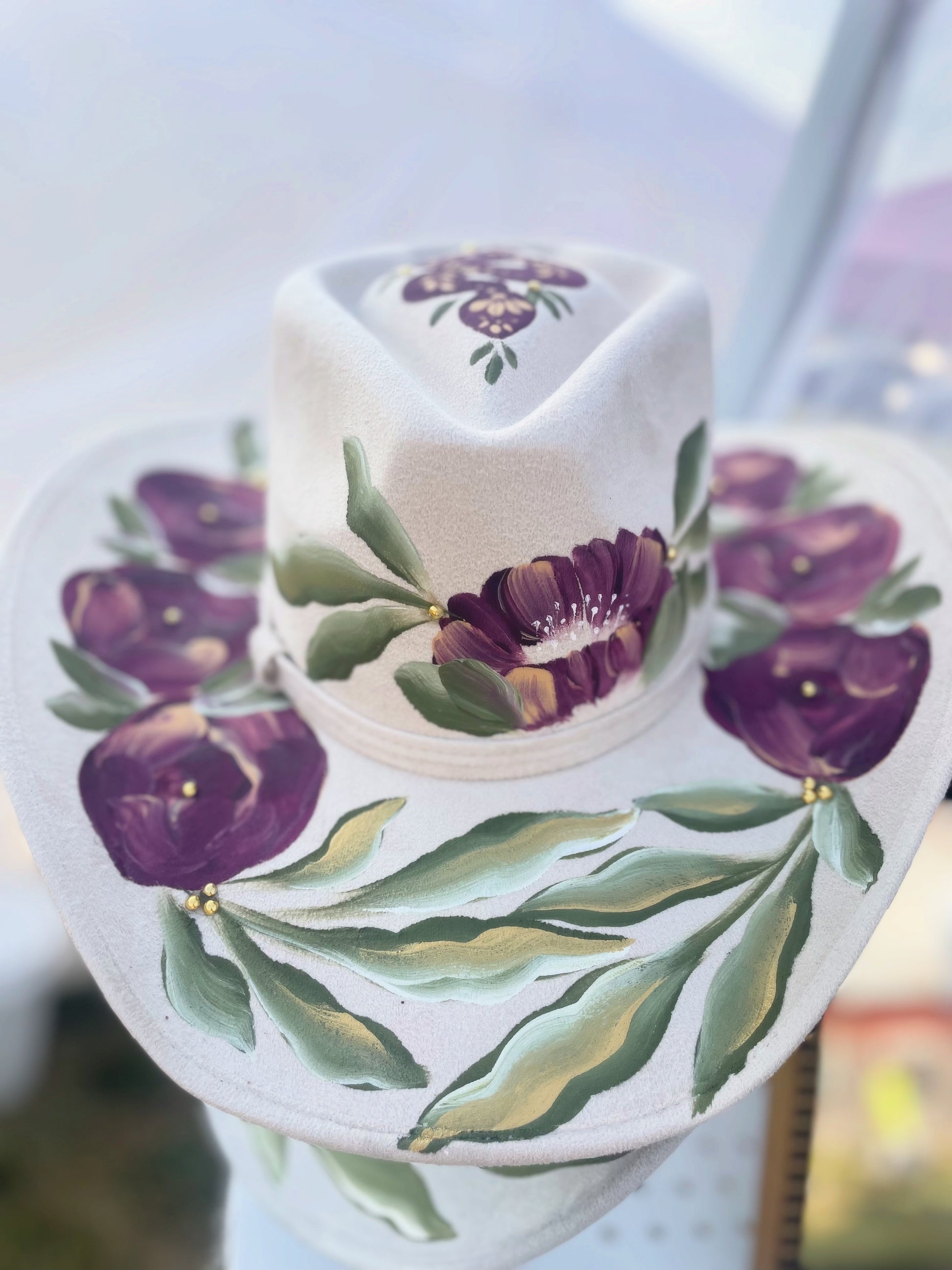Plum colored roses. Size med to lrg. Fits most. 52cm-58cm