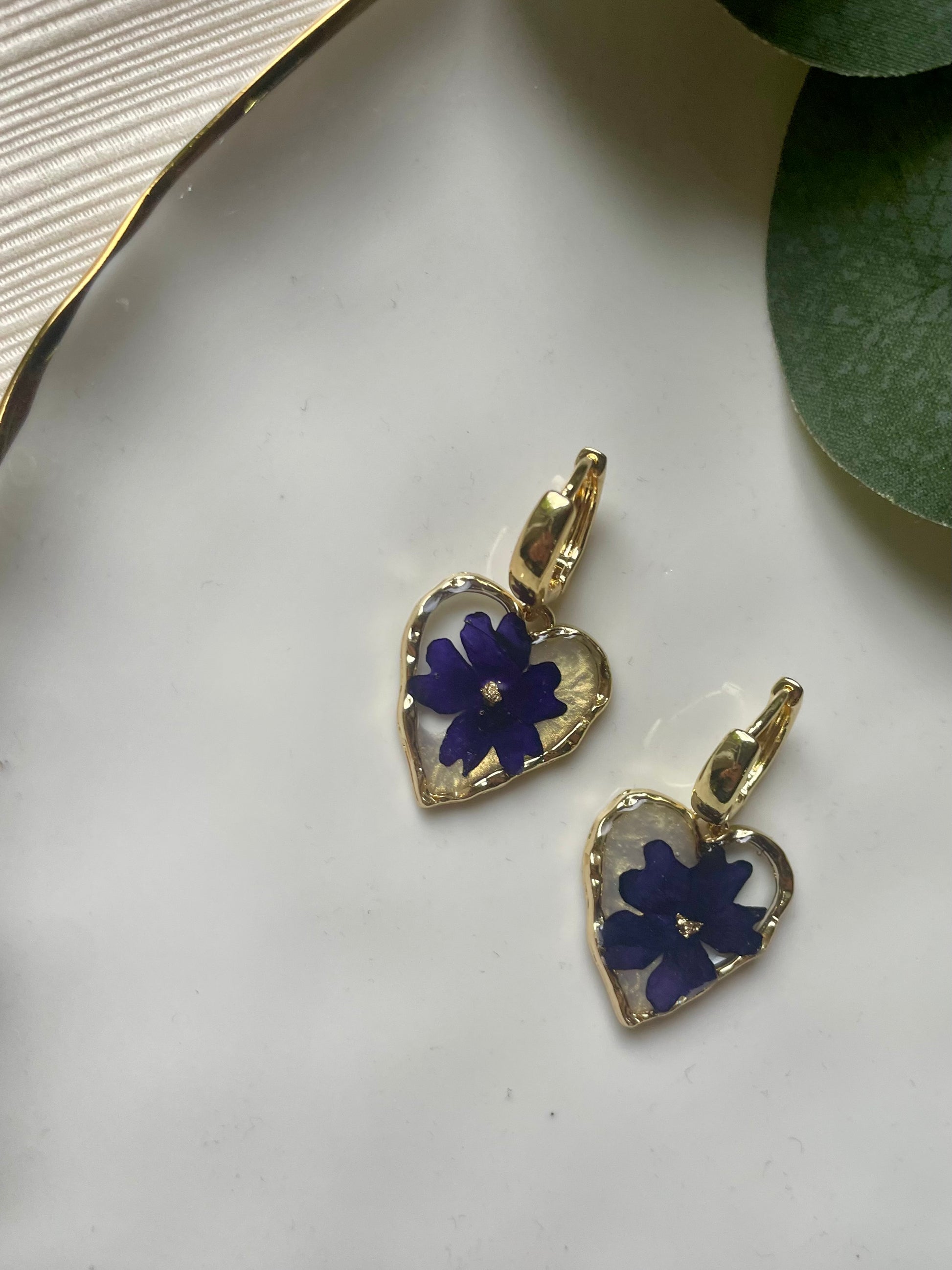 Experience the beauty of nature with our Real Purple Flower Earrings. Each earring features a real purple flower encased in clear and frosted resin for a unique, one of a kind look. The tarnish resistant and hypoallergenic hooks/studs ensure comfort and longevity. Elevate your outfit with these stunning earrings.
