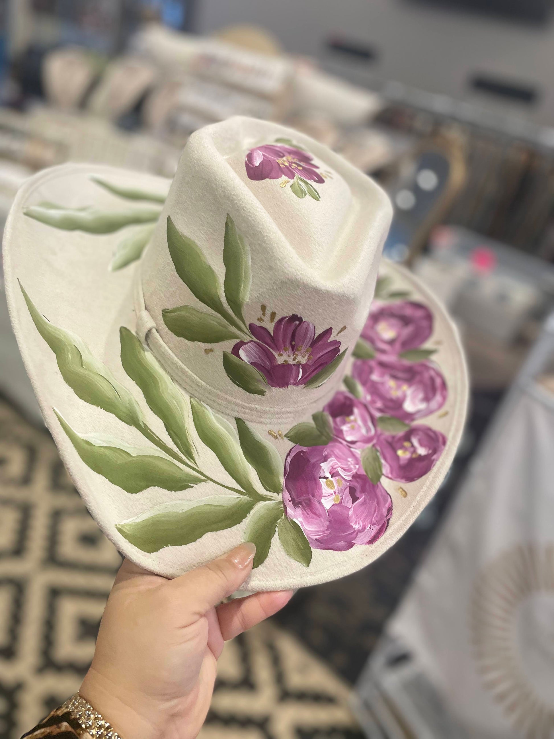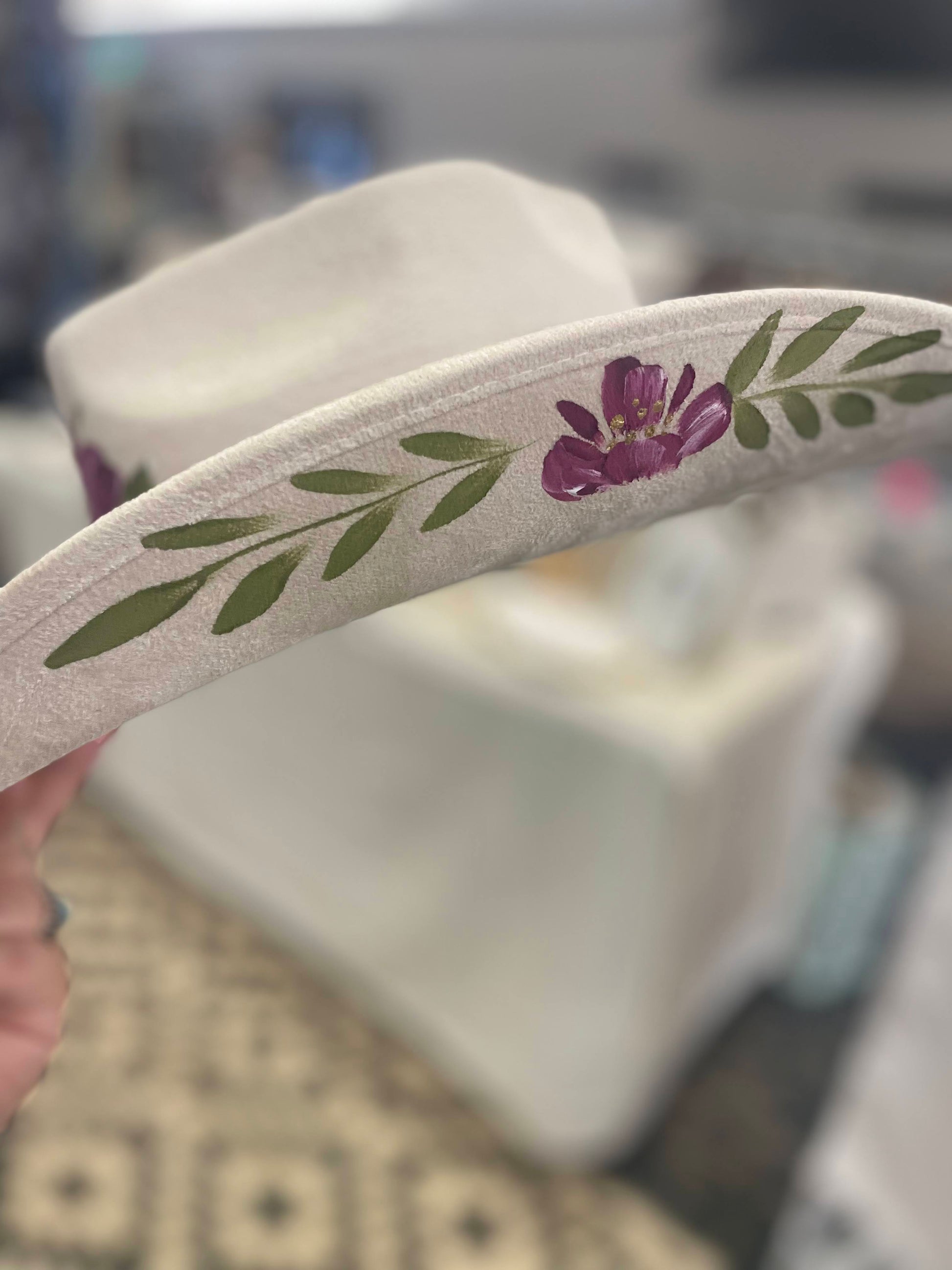 53-58 cm size medium fits most. Runs a bit big. Acrylic paint