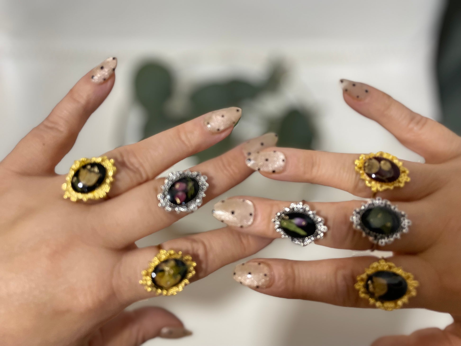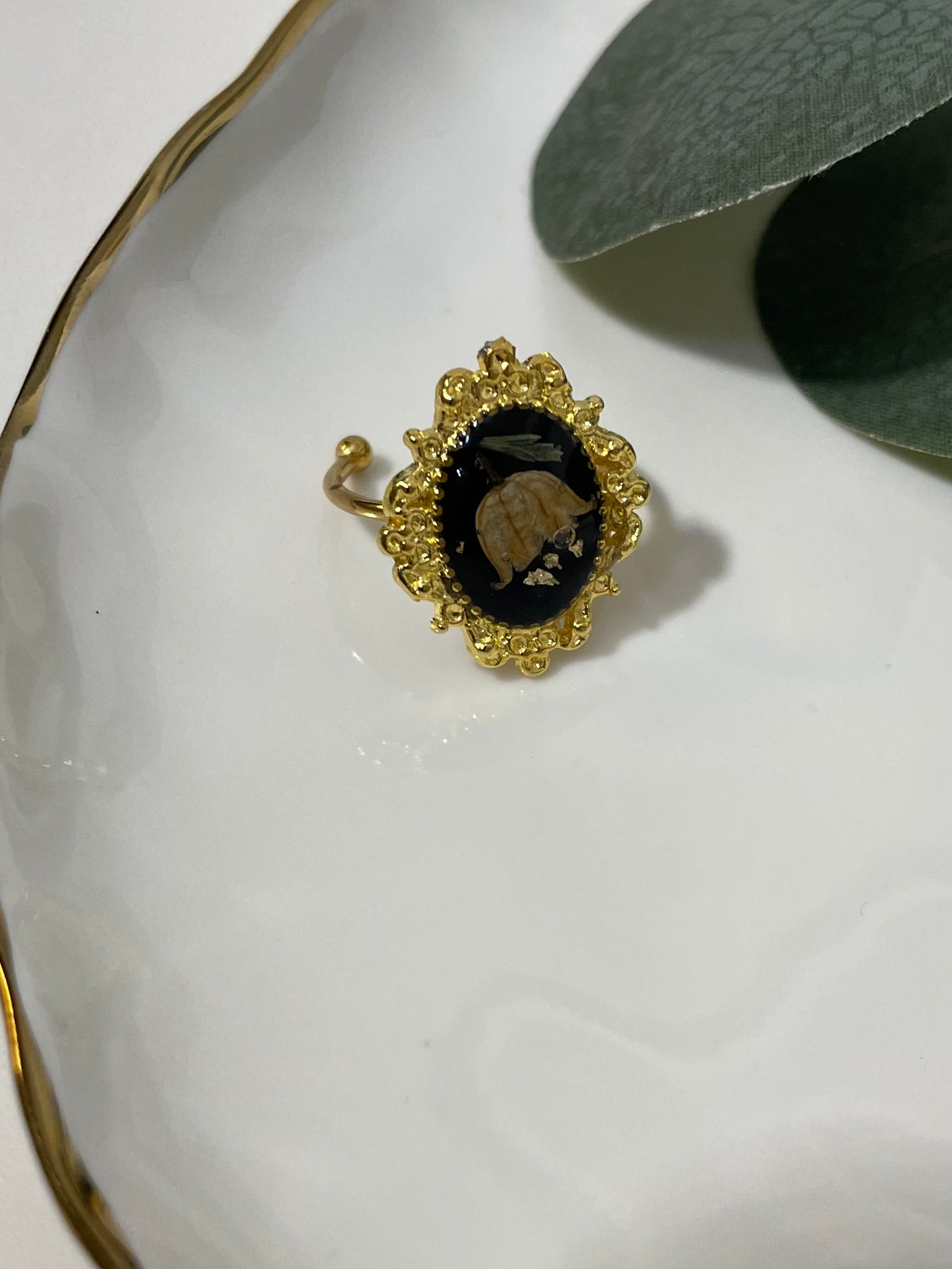 Real lily of the valley flower. Tarnish free & adjustable gold ring