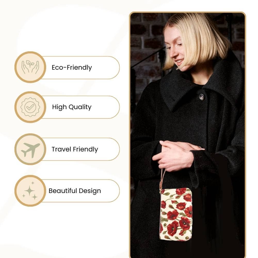 We are delighted to present this lovingly made woven tapestry wristlet bag, designed specifically for storing your smart phone, keys as well as your PPEs, featuring our 100% vegan friendly durable PU leather hand loop. Time to have all the small personal belongings organised!